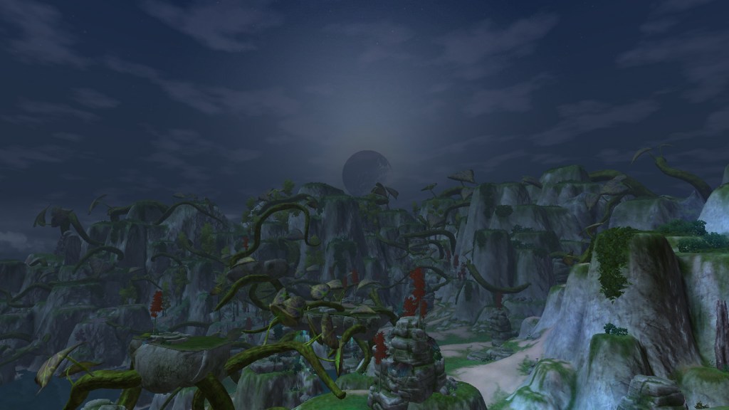 This may be a nighttime view of Takish Badlands as the geography, and flora look very similar.