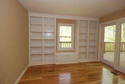 The large empty space in the center of the shelving will be covered with a large LED panel and silhouette lattice work (not pictured. Where the Firiona poster is currently located below).