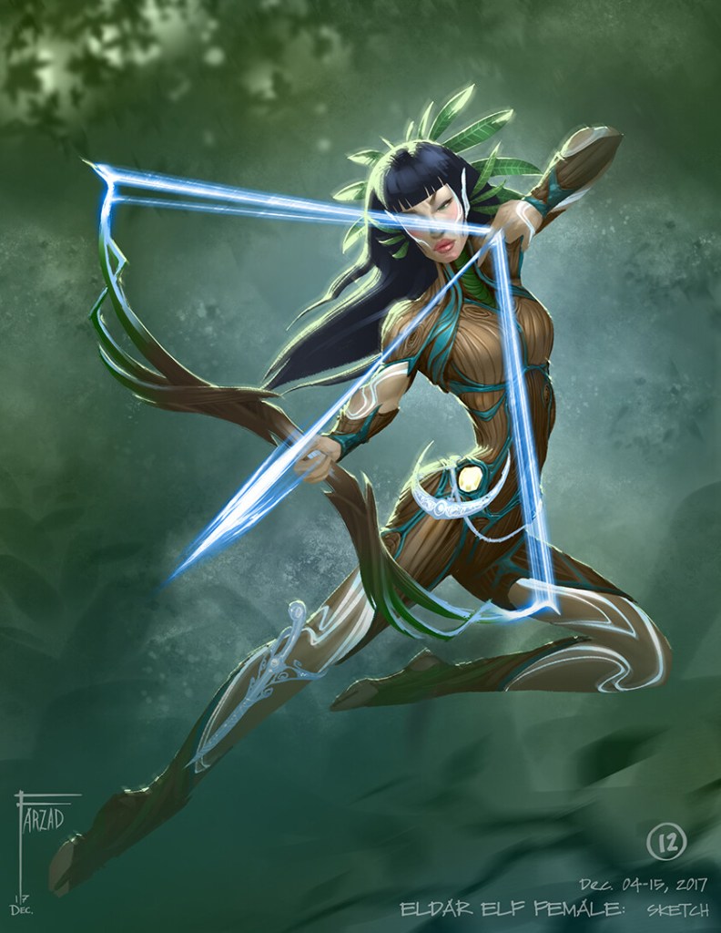 So for the Elddar, inititally we tried different proprotions. Facial features. And then with the outfitting, we wanted to see if we could create a woodsy, foresty natural hero suits. What if their armor was like vines that grew around them? And grew around them perfectly. To form the different armors that they need. Or if the leaves and the trunk they could literally grow on them.