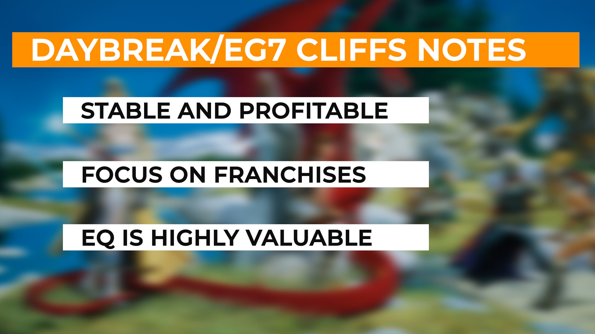Firstly, and most important for good business. EverQuest and Daybreak are stable and profitable