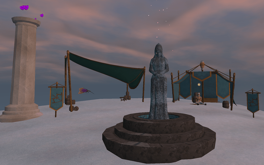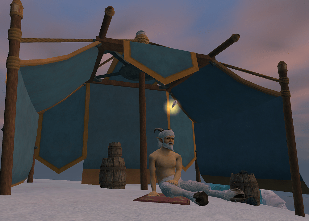 The Herald to Erollisi is a satyr, sat under the tent which is now available to purchase from the merchants at the various encampments.