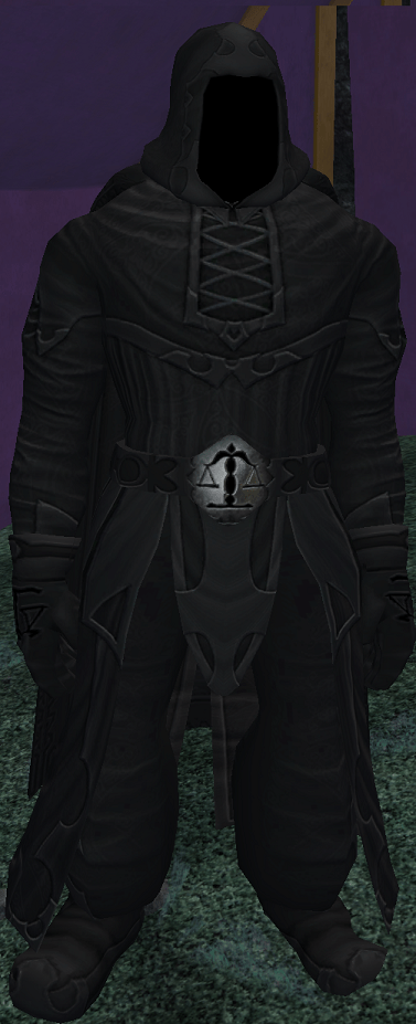 The Tribunal are nameless, faceless and so their herald also reflects this in their hooded appearance and dressed all in black. They wear the emblem of the Tribunal, the scales of balance on their waist.