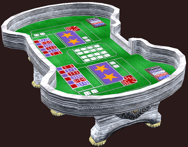 White lacquered Craps Table – The white lacquered set makes a reappearance in the camp. An interesting table which matches the card table, the pool table and the roulette table who are all available during the Year of Darkpaw celebration in 2024.