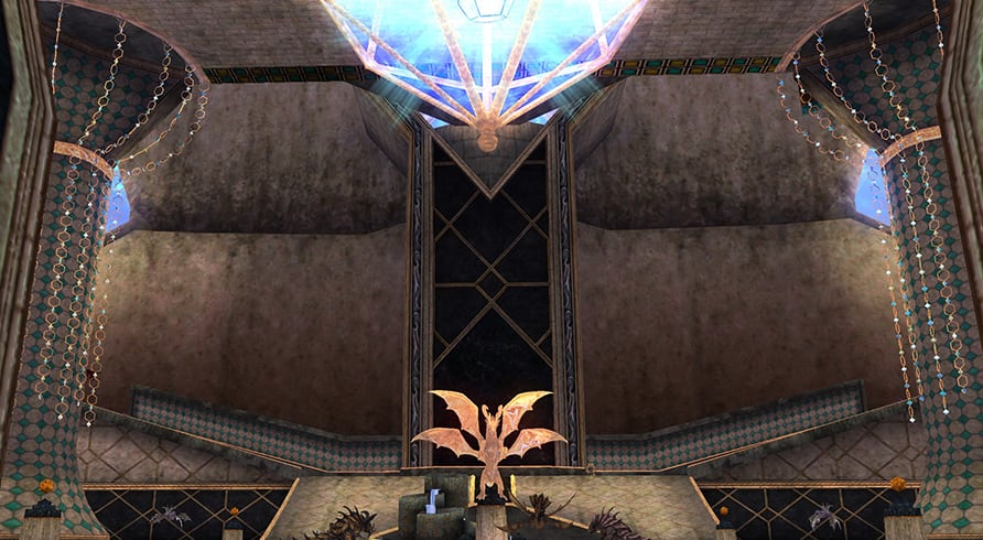 This place serves two main purposes. It shelters and houses the servitors of the great golden dragons, whom Norrathians have interpreted as calling themselves “Aurelians.” It also constantly reminds those servitors how magnanimous and powerful their Draconic masters are. It is clear that the structure, while magnificent, does not accommodate the massive outer brood dragons, as they cannot fit into most of the rooms and corridors. Stepping into such a place, a home for lesser creatures, would demean them. There are no doors in the interior here, since privacy is not a consideration for the servitors, and theft is not even a thought. Until the Norrathians started fighting back, the doors leading out to the Theater of Eternity, which served as defensive structures to prevent enemy invasion, were usually open.