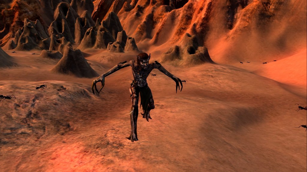 You’ll cross a field of army ants patrolling a desert plateau before you find yourself firmly trespassing into orc territory.