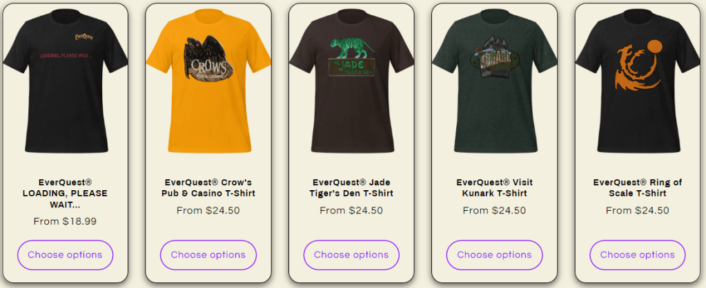 Need some gift ideas for that EverQuest fan in your life? Maybe even a little gift for yourself? Well don’t forget about the awesome Darkpaw Games Swag Store! Here are just a few of the cool EQ1 T-Shirts you can get!