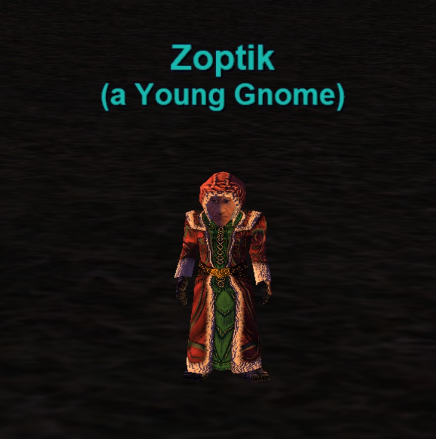 He tells you that the goblins already have all the strongest rope but a nearby gnome speaks up and asks if you need help catching something. Hail Zoptik and he will task you with gathering several items for him.