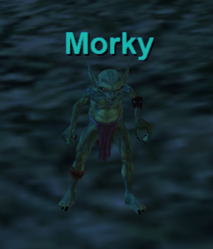 He knows the troll Hagbletha is quite jealous of his bear skin cloak so that must be what she wants! He only wants one small favor before he will give it to you though. He gives you a bag of coins and tells you to give it to a rather fast and slippery aqua goblin called Morky.
