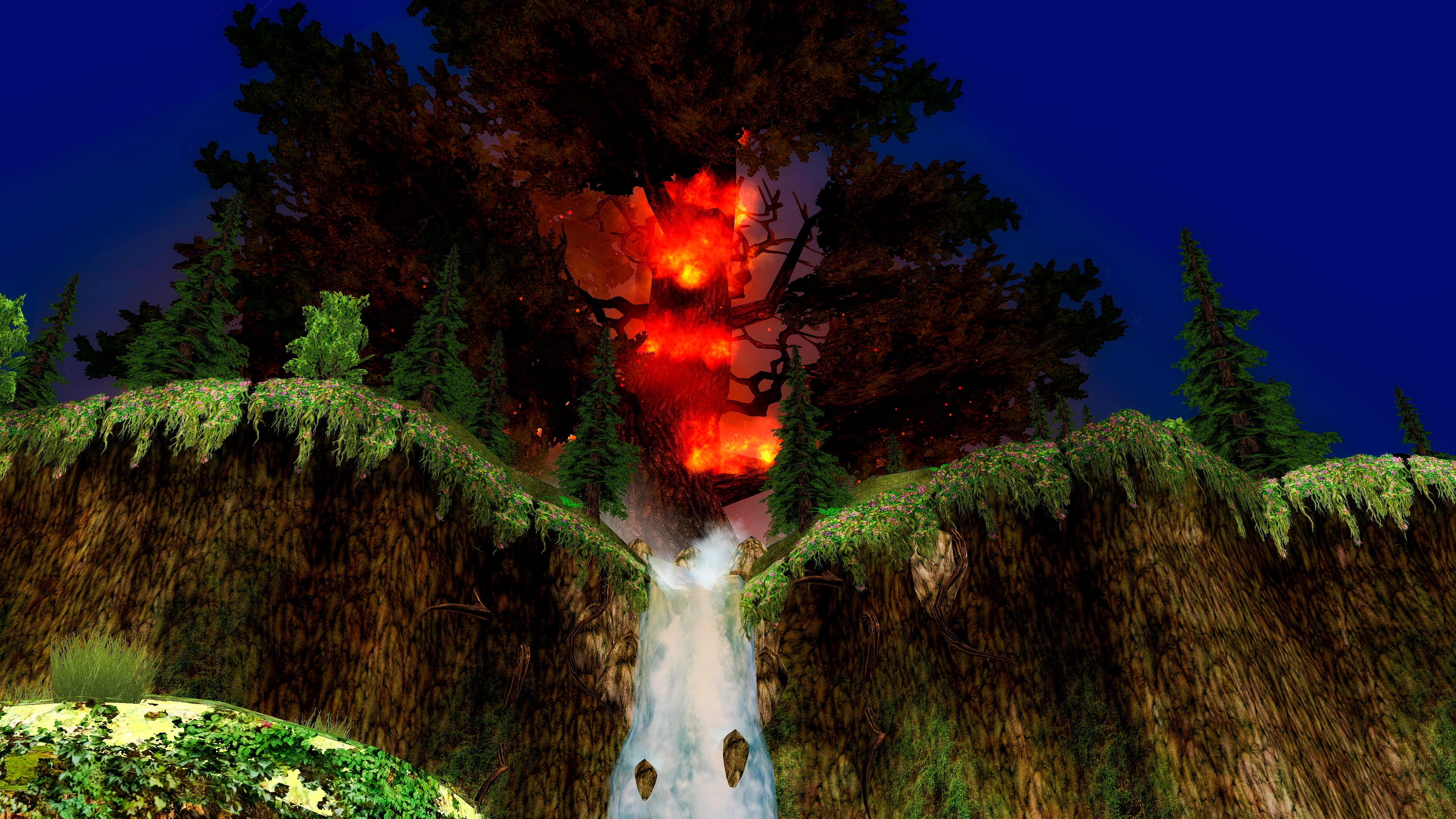 Like much of the Plane of Growth, the Scarred Grove was once an idyllic tapestry of rolling hills, babbling brooks, lush forests, and transcendent waterfalls that all manner of fauna and flora called home. That picturesque beauty and tranquil serenity has been shattered by the Burning Host’s brutal assault, spearheaded by Solusek Ro, Rallos Zek, and Innoruuk.